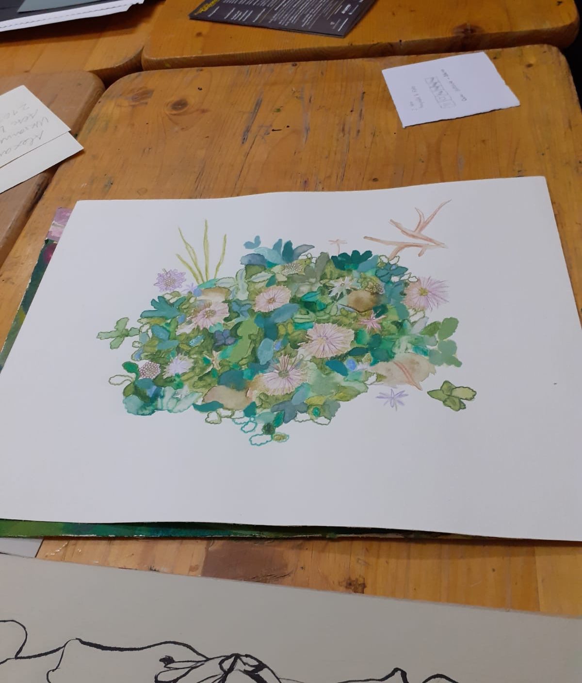 Zwischen 2020 und 2025 zeichnete, malte und druckte ich in einer Künstlergemeinschaft in Halle an der Saale. Auch auf Reisen entstehen viele Skizzen und Malereien, auf die ich gerne aufbauen möchte für weitere Arbeiten mit Pinsel und Nähmaschine.